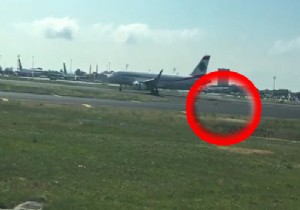 Atatürk Havalimanı apronuna nereden girdiği tespit edilemeyen köpek pistte dolaşırken bir uçağın yolcusu tarafından böyle görüntülendi…