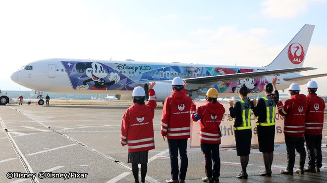 Japon Havayolları JAL, Walt Disney Company'nin 100. yıl dönümü nedeniyle Disney karakterleriyle özel boyama yaptırdığı "JAL Dream Express" serisindeki Boeing 767-300ER tipi uçağını bugün iç hat uçuşlarında kullanmaya başladı.