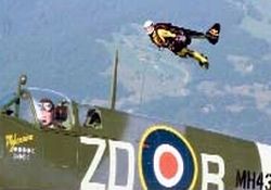 Jet kanatlarıyla yaptığı sıradışı uçuşlarıyla tanınan İsviçreli eski savaş pilotu Yves Rossy (53), bu kez İsviçre semalarında tarihi bir savaş uçağıyla aynı hizada tur attı
