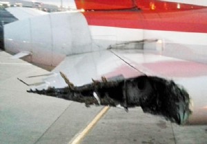 Amerikan Airlines uçağının yatay stabilizesi çarpma sonucu bu hale geldi
