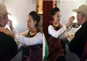 Olay Çin'de Hainan Havayolları iç hatlar uçuşunda meydana geldi. Yolculara uçuş sırasında yemekleri dağıtıldı. Yolcular yemeklerini yerken kabin memuru Fan Xuesong'un gözüne bir yolcu takıldı. 71 yaşındaki felçli hasta yemek yiyebilmek için kaşığı tutmaya çalışıyor ama yapamıyordu. Bunun üzerine yaşlı yolcuya yardımcı olmak isteyen Fan Xuesong, dizlerinin üstünde durarak, ona yemek yedirmeye başladı.
