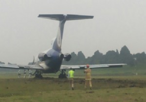 Lineas Aereas Suramericanas Havayollarının Boeing 727 tipi uçağı kalkıştan vazgeçince pistte duramayarak toprak zemine çıktı