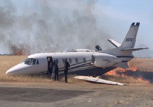 Kaliforniya'da Cessna 560XL Citation Excel tipi uçak kalkış esnasında pistten çıktı