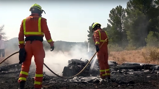 Requena Havalimanı'ndan havalanan CSA PS-28 Cruiser tipi uçak, kalkıştan kısa süre sonra havaalanı yakınında bir tarlaya düştü. Tamamen yanan uçakta bulunan iki kişinin de hayatını kaybettiği belirtildi.
