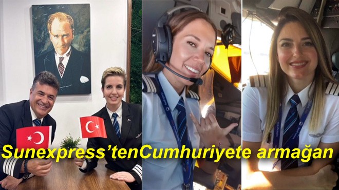 Türk Hava yolları ve Lufthansa’nın ortak kuruluşu Sunexpress, Cumhuriyetin 100. yıldönümünü, Kaptan Pilot Oğuz Senel’in yazıp bestelediği ve şirketin kadın pilotlarının çoğunlukta olduğu koronun seslendirdiği marşla kutladı.