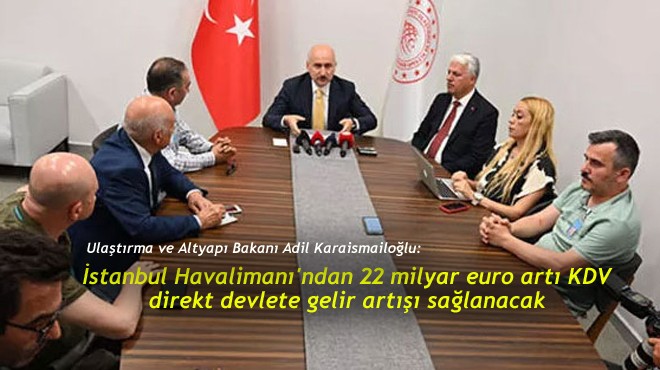 Bakan Karaismailoğlu, CHP Genel Başkanı Kılıçdaroğlu'nun iddialarına ilişkin "Rakamlar tamamen uydurmadır, evet bir 22 milyar rakamı var, İstanbul Havalimanı'ndan 22 milyar euro artı KDV direkt devlete gelir artışı sağlanacak" dedi.