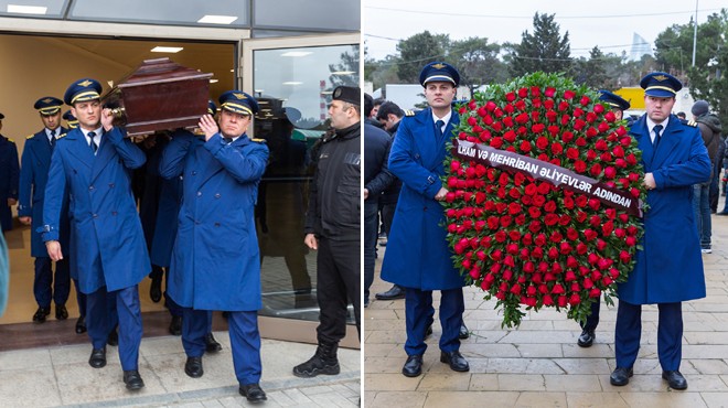 Törene Azerbaycan Devlet Başkanı İlham Aliyev, eşi Mihriban Aliyev, kaza kurbanlarının aileleri, çalışma arkadaşları ve meslektaşları ile resmi protokol görevlileri katıldı.