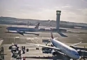 İstanbul–Ankara seferini yapmak üzere pist başına ilerlemekte olan THY'nin Boeing 777 uçağının sağ kanattan yol kenarındaki elektrik direğine çarpma anı görüntüleri ortaya çıktı