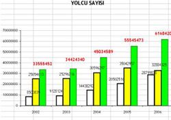2000-2007 döneminde ülkemizin sahip olduğu koltuk kapasitesi 20 binlerden 40 binlere dayanırken, buradaki 20 bin koltukluk artışın 14 binini özel kesim, kalanını ise THY gerçekleştirdi.