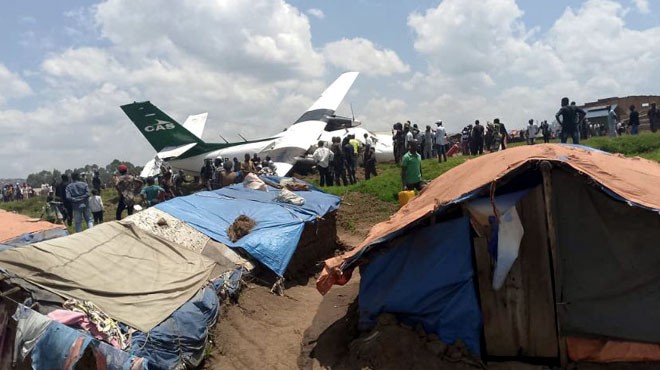 Kongo'da iniş sırasında düşen yolcu uçağında iki kişi yaralandı