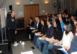 Ünlü tiyatro ve sinema sanatçısı Cihan Ünal Atatürk Havalimanı'nda görev yapan hava trafik kontrolörlerine diksiyon dersi veriyor.