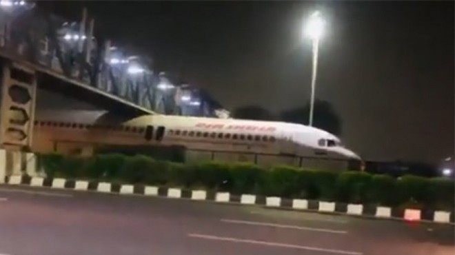 Hindistan'da hurda uçak, taşınırken köprü altında sıkıştı