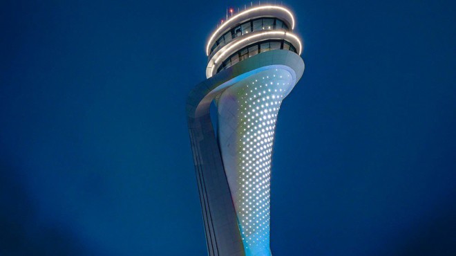 Dünya Çocuk Hakları günü nedeniyle İstanbul Havalimanı Hava Trafik Trafik Kontrol Kulesi maviye büründü.