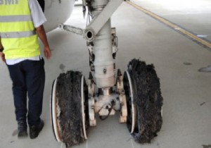 Garuda Indonesia Havayolları’nın Boeing 737-800 uçağının Medan Kualanamu Havalimanına inişte ana iniş takımındaki lastikleri patladı