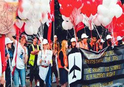 Uluslararası Taşımacılık İşçileri Federasyonu (ITF) trafından düzenlenen gösteriye çok sayıda federasyon üyesi ve Londra'da yaşayan Türk vatandaşı katıldı. Protestonun parçası olarak, üzerinde "Başbakan Erdoğan, atılan işçileri geri al ve Türkiye'nin onurunu dünya sahnesinde yere düşürme" yazan, Tayyip Erdoğan'a iletilmesi için Büyükelçilik'e verilmesi planlanan temsili olimpiyat madalyonunu ise Elçilik kabul etmedi.