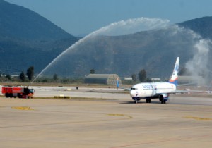 TAV Havalimanları tarafından işletilen Milas-Bodrum Havalimanı’nda pandemi nedeniyle verilen aranın ardından tarifeli dış hat uçuşları başladı. Bu sabah Almanya Hannover’den gelen Sunexpress uçağı su takıyla karşılandı. Yolcuları terminalde Milas Kaymakamı Eren Aslan, DHMİ Başmüdürü Kemal Daştan, TAV Milas-Bodrum Havalimanı İşletme Koordinatörü İclal Kayaoğlu ve havalimanı çalışanları çiçeklerle karşıladı.