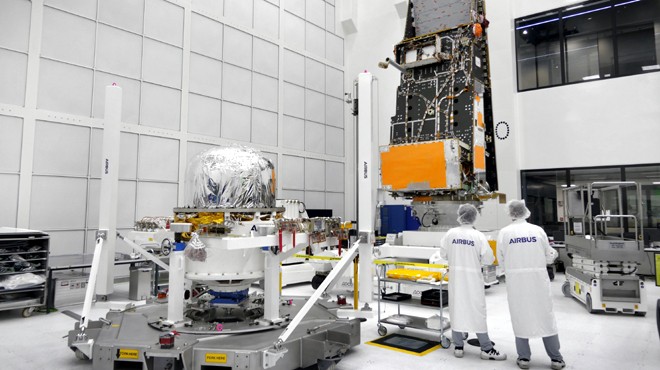 Yeni nesil kutup yörüngeli meteoroloji uydusu MetOp-SG’nin ilk “B” modeli fırlatma için yerini aldı. Airbus’ın Almanya’nın Friedrichshafen kentindeki uydu entegrasyon merkezindeki milimetre hassasiyetli bir vinç yardımı ile altı metre yüksekliğindeki uydu fırlatma sistemine yerleştirildi.