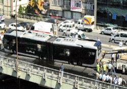Mecidiyeköy’de lastiği patlayınca kontrolden çıkan metrobüs, bariyerleri aşarak D-100 Karayolu'na girdi. Metrobüsün çarpması sonucu THY pilotu Mustafa Oğuz înan'ın kullandığı otomobil ters döndü.