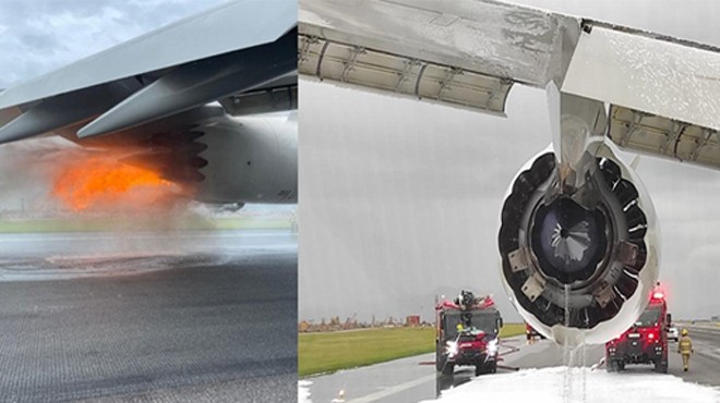 Bunun üzerine havalimanı pist çevresinde itfaiye ekipleri önlem aldı. Uçak güvenli bir inişin ardından pistte durdu ve itfaiye ekiplerinin kısa sürede müdahalesiyle motor yangını söndürüldü.