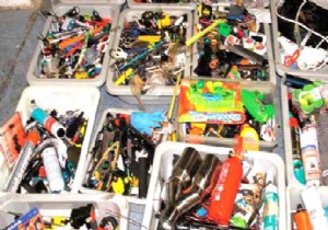 TAV özel güvenlik personeli, 6 ayda iç ve dış hatlar terminallerindeki kontrol noktalarında tahditli alanlarla kabine alınması yasak olan 56 bin madde tespit etti. Bunlar arasında 11 bin 795 bıçak ve kesici alet, içerisinde pense, tornavida gibi aletlerin bulunduğu 18 bin 229 takım çantası, 2 bin 31 makas, egzozun bile aralarında olduğu bin 940 otomobil parçası, bin 542 inşaat malzemesi (vida, çivi, vb.) de yer aldı.