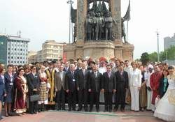 Kuruluşunun 75. yılını kutlayan THY, ilk töreni sabah saat 10.00’da Taksim’de yaptı. Dünyanın çeşitli ülkelerinde THY adına görev yapan 150 temsilci, kendi ülkelerinin milli ve yöresel kıyafetleri ile Taksim’i adeta renk cümbüşüne çevirdi. Bol bol fotoğraf çektiren misafirler, Türkiye’de bulunmaktan dolayı çok mutlu olduklarını belirterek, şirketleri THY’ye daha nice 75. yıllar dilediler.