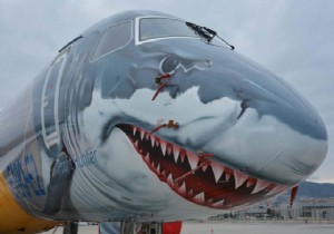 Özel köpekbalığı boyaması ile dikkatleri üzerine çeken Embraer E190-E2 test uçağı, önceki gün Sabiha Gökçen Havalimanı'na geldi. Brezilyalı şirket tarafından Türk şirketleri için Sabiha Gökçen Havalimanı'na getirilen uçak, dün Marmara Bölgesi üzerinde yarım saat test uçuşu gerçekleştirdi. Gerçekleştirilen test uçuşuna bazı özel havayolu şirketlerinin temsilcileri de katıldı. Brezilyalı uçak üreticisi Embraer tarafından tasarlanan test uçağı daha önce Atatürk Havalimanına gelmişti.