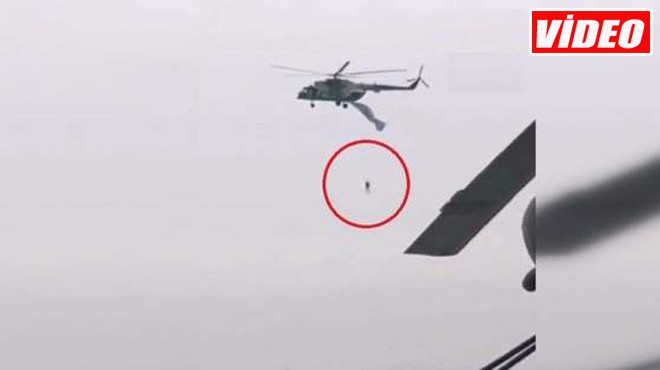 PARAŞÜT HELİKOPTERE TAKILDI