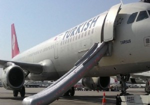 Atatürk Havalimanı’nda park pozisyonunda bekleyen Türk Hava Yolları’nın Airbus A321 tipi, ‘Tarsus’ isimli uçağının slide’ı patladı