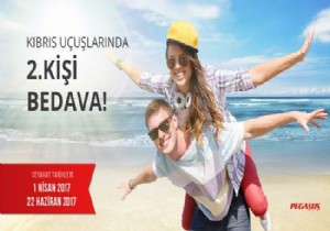Pegasus, KKTC uçuşlarına yönelik yeni bir kampanya başlattı. Kampanyada biletlerini 9-12 Mart arasında alanlar, 1 Nisan ile 22 Haziran 2017 tarihleri arasında KKTC hattında yapacakları tüm uçuşlarda aynı bilette yer alacak 2.kişi için ücret ödemeyecek.