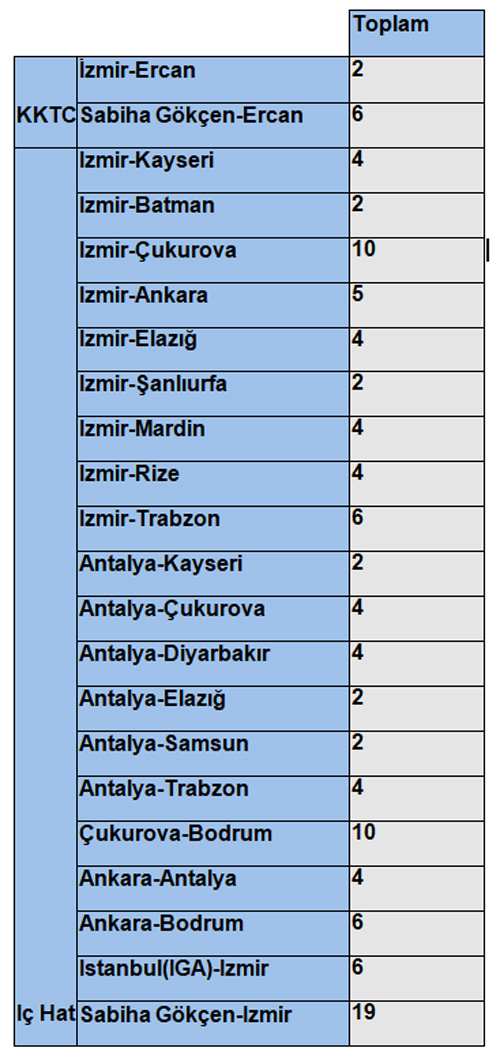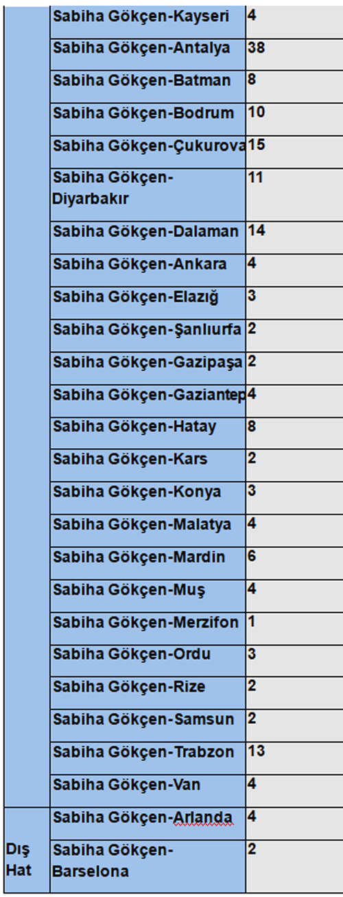 Pegasus'un duyurduğu ek seferler şöyle:
