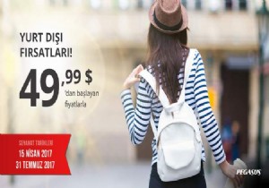 Pegasus’un yeni kampanyasında biletlerini 21-26 Mart 2017’de alan misafirler, 15 Nisan - 31 Temmuz 2017 arasında gerçekleştirecekleri yurt dışı uçuşlarda 49,99 Dolardan  başlayan fiyatlarla uçma imkânına sahip olacak.