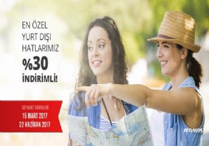 Pegasus 8 Mart Dünya Kadınlar Günü’ne özel bir kampanyasında dış hat uçuş noktalarında yüzde 30 indirim sağlıyor.