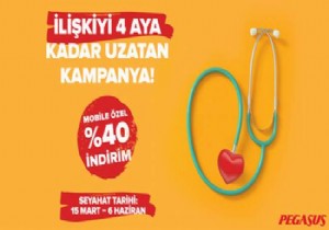 Pegasus’un Sevgililer Günü kampanyası kapsamında biletlerini 9-11 Şubat tarihleri arasında Pegasus’un mobil uygulaması üzerinden alan yolular 15 Mart – 6 Haziran 2018 tarihleri arasında Barselona, Madrid, Roma, Milano, Bolonya, Paris, Atina, Prag, Budapeşte ve Viyana’ya yüzde 40 indirimli uçabiliyor. Pegasus’un 41 ülkede 108 noktaya ulaşan uçuş ağı ve Sevgililer Günü kampanyası ile ilgili detaylı bilgilere www.flypgs.com üzerinden ulaşılabilir.