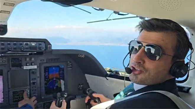 Selçuk Bayraktar, satın aldıkları İtalyan Şirketi Piaggio Aerospace'in P180 tipi uçağıyla uçtu