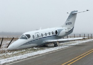 ABD‘nin Indiana Eyaleti’ndeki Richmond Havalimanı’nda Hawker Beechcraft 400A tipi jet indikten sonra pistte duramayarak toprak zemine çıktı