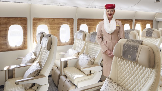 ATM’de sergilenecek olan son derece popüler Emirates Premium Ekonomi koltuğu, geleneksel kabine lüks bir hava katıyor. 102 cm'e ulaşan geniş koltuk aralığı, 49,5 cm’lik koltuk genişliği ve 20 cm'lik koltuk yatırma mesafesinin yanı sıra diğer incelikli dokunuşlarla yolcuların daha konforlu bir şekilde arkalarına yaslanıp rahatlamalarını sağlıyor .