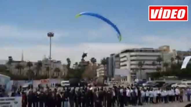 Yamaç paraşütçü, gösteri atlayışı sırasında protokolün üzerine düştü