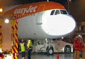 easyjet Havayolları uçağına körükten ayrılırken push-back aracı çarptı