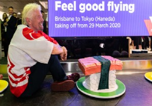 Virgin Airlines Group'un kurucusu Sir Richard Branson, Virgin Australia’nın Japonya uçuşunu sağlayacak iznin alınmasını sıra dışı bir organizasyonla kutladı. Brisbane Havaalanında bir bagaj bandı “suşi treni”ne dönüştürüldü. Sir Richard Branson bu bagaj bandı üzerinde suşi maketleri arasında salona girerek davetlileri ve gazetecileri şaşırttı.