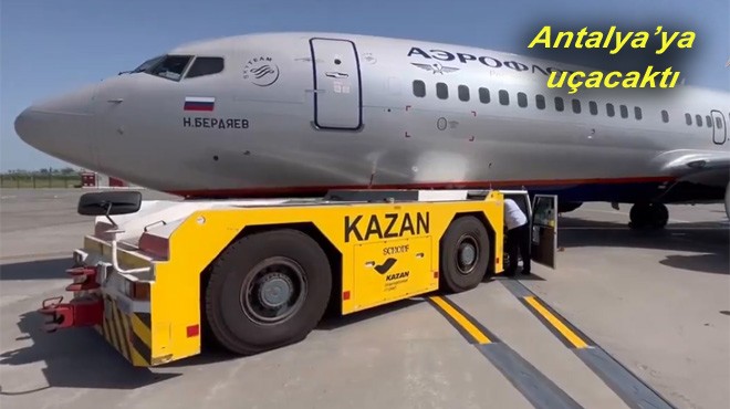 Kazan Havalimanı'nda Antalya uçuşu için römorkör tarafından çekilen Aeroflot uçağı, römorkörle çarpıştı