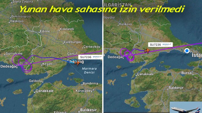Rusya’nın Ukrayna'ya saldırıları nedeniyle Avrupa Birliği (AB) yeni bir yaptırım kararı daha alarak, Avrupa hava sahasını Rus uçaklarına kapatmıştı. Kararın ardından Aeroflot Havayolları'nın Moskova’dan havalanarak İtalya’nın Verona şehrine giden yolcu uçağının Yunan hava sahasına girişine izin verilmedi. Bunun üzerine SU-7236 sefer sayılı Boeing-737 tipi yolcu uçağı, bir süre Türkiye-Yunanistan sınırında tur atmak zorunda kaldı. Gerekli iznin verilmemesi üzerine Rus yolcu uçağı İstanbul’a yöneldi. Uçak saat 21.00 sıralarında İstanbul Havalimanı’na sorunsuz iniş yaptı. Uçağın yakıt ikmalinin ardından yolcularla birlikte yeniden Moskova’ya dönmek üzere havalanması bekleniyor.