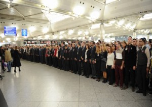 Burası Atatürk Havalimanı. Saatler tam 09.05'i gösterdiğinde havalimanı çalışanları, yolcular ve turistler Atatürk için 1 dakikalık saygı duruşunda bulundu.