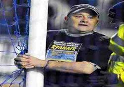 İngiltere’de Everton-Manchester United City maçında bir taraftar, kızını işe almayan Ryanair’i protesto etmek için kendini kaleye kilitledi