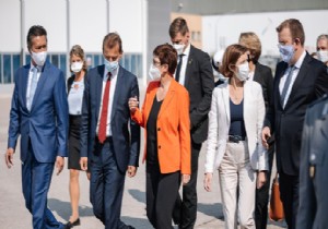Bakanlar Kramp-Karrenbauer ve Parly, Airbus İcra Kurulu Başkanı (CEO) Guillaume Faury, Airbus Defence and Space CEO'su Dirk Hoke'un yanı sıra yerel politikacılar liderliğinde üst düzey şirket yöneticileriyle bir araya geldi.