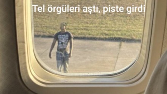 Yolcuların çektikleri fotoğraflarda, şüphelinin bir uçağın yanında durduğu görülüyor.
