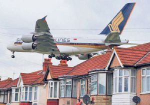 Londra’nın batısında bulunan Hounslow’da yemyeşil ağaçların arasında yer alan bu müstakil evler uzaktan bakanlar için huzurlu ve mutlu bir yaşam sürmek maksadıyla çekici gelebilir. Ancak gerçek öyle değil. Hounslow semti ülkenin en gürültülü bölgesi olarak biliniyor. Çünkü dünyanın en işlek havalimanlarından olan Heathrow iki adım ötesinde ve havaalanına inen uçaklar buradaki evleri neredeyse sıyırıp geçiyor. Ortaya da bu ilginç görüntü çıkıyor.