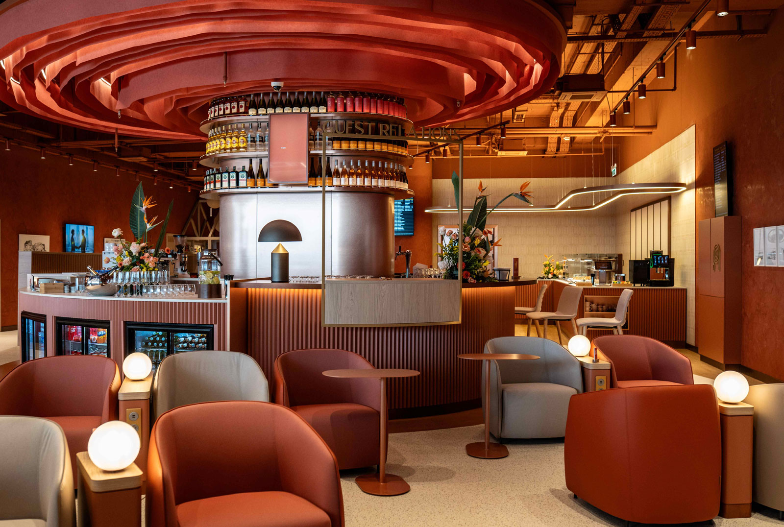 Sofya Havalimanı’ndaki lounge, misafirlerin sosyal, üretken ve dinlenme ihtiyaçları arasında akıcı geçiş yapabildiği hibrit bir ortam olarak tasarlandı. Bar ve yaşam alanı, yeme-içme bölümü, çalışma alanları, çocuk alanı, dinlenme odası ve terasla çok katmanlı bir deneyim sunuyor.