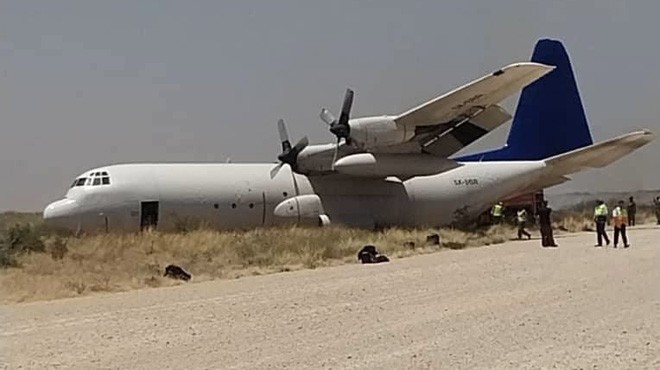 Somali’de L-100 Hercules tipi kargo uçağı, Jowhar Havaalanına inişte tehlike atlattı