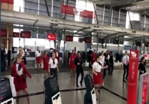 Virgin Australia ekibi Sydney Havalimanı'nda şov yaptı... Tüm dünyayı etkisi altına alan koronavirüs salgını neredeyse durma noktasına gelen havayolu sektöründe moralleri düşürdü. Ancak kimi çalışanlar her türlü olumsuzluğa rağmen bulundukları ortamı neşelendirmeye devam ediyorlar. İşte Virgin Australia ekibi de Sydney Havalimanında böyle bir etkinlik yaptı. Şirket çalışanları sosyal mesafeyi koruyarak dans etmenin inceliğini sergiledi.