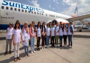 SunExpress ile Antalya’ya varışlarında pilotlar ve kabin ekipleri ile uçağı ve kokpiti yakından gezme ve uçak ile ilgili bilgi edinme imkanına sahip olan çocuklar, SunExpress’in Antalya yönetim binası SunPlaza’da düzenlenen törende katılım sertifikalarını SunExpress Genel Müdür Yardımcısı Ahmet Çalışkan’dan teslim aldılar.